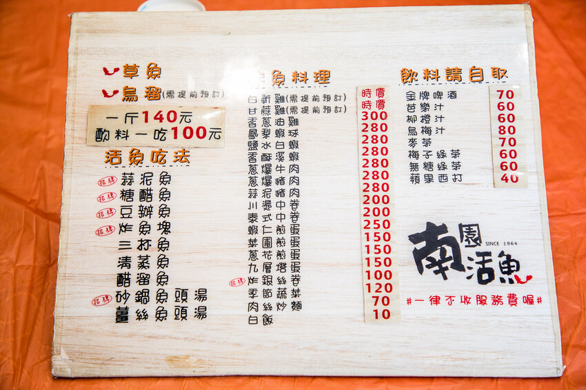 南園活魚老店餐廳主打的就是活魚料理,一魚九吃!雖然跟一般什麼二三十吃選擇性比較少,但這九吃幾乎都是石門活魚的經典,除了活魚料理外,也有一些熱炒之類的料理,活魚是秤重計價,做一吃就是一百元這樣