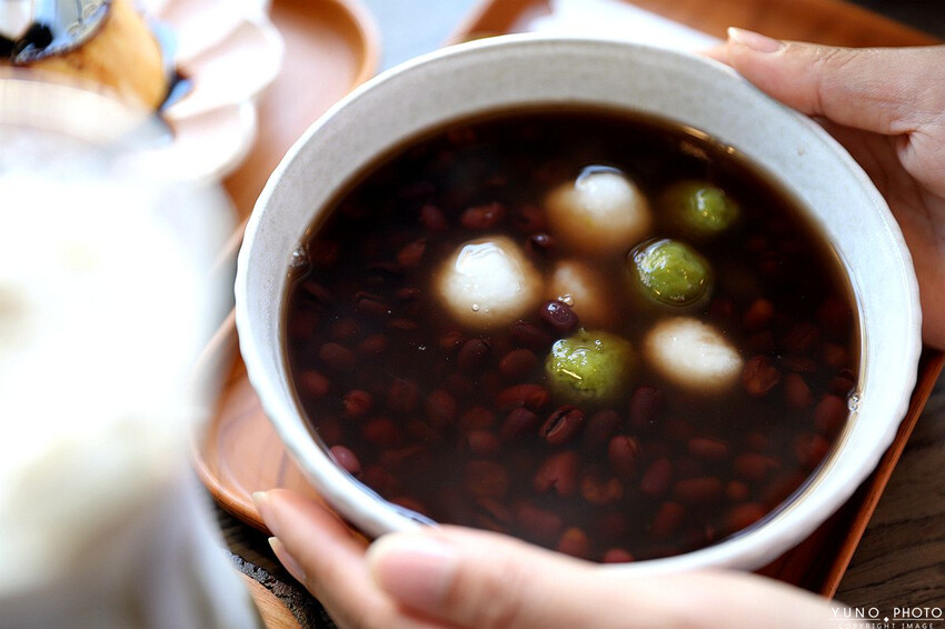 QQ的日式糯米白玉雙色糰子 加上香甜的高雄9號紅豆濃純香的湯汁