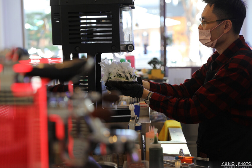 而且所長除了一邊刨冰增量外還會用手去形塑刨冰的形狀 這也為何伍壹冰研所的每一份刨冰都可以如此渾圓可愛又立體