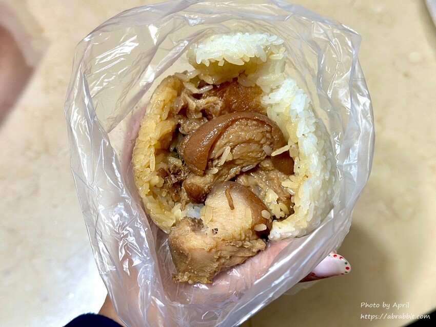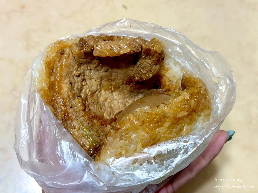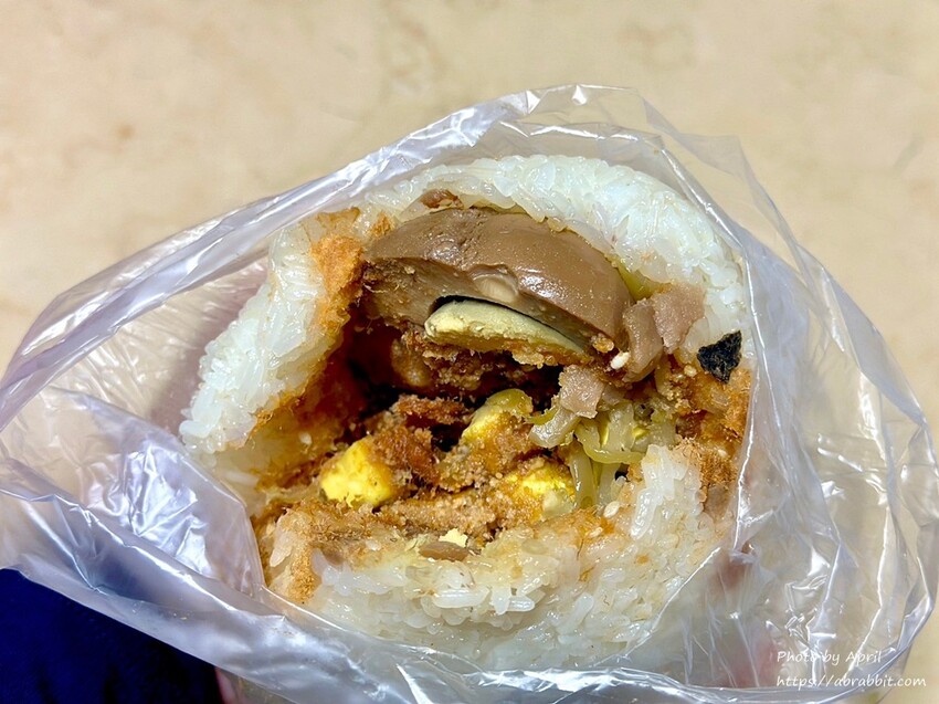 爌肉飯糰裡頭的爌肉給得非常豪邁,肥肉兼顧的爌肉吃起來很讚,糯米還沾著爌肉的湯汁,所以吃起來雖然有點濕潤但卻意外的好吃!一樣有包著傳統飯糰裡頭該有的料,配上有醬汁裹覆的料,不死鹹的爌肉非常加分,難怪網友狂推。