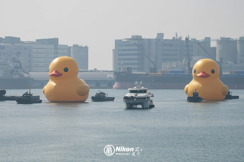 以迎接豪華郵輪的水門禮,歡迎黃色小鴨進入愛河