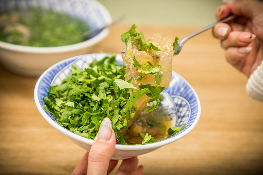 我跟151都是香菜控,所以我們加了很多香菜,看起來綠綠的一片XD