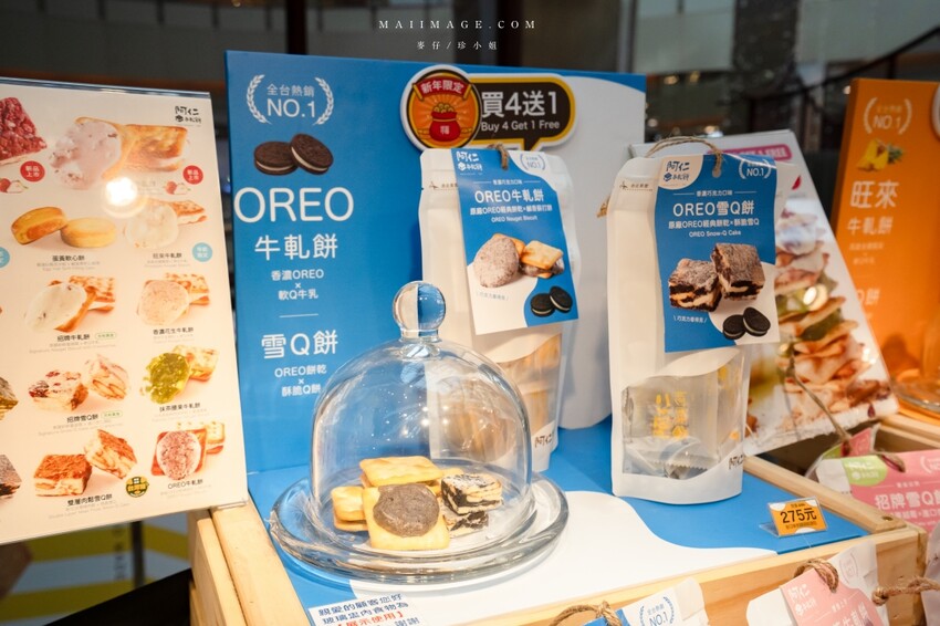 阿仁牛軋餅的純手工牛軋餅口味選擇超多,有蔓越莓、花生、抹茶腰果、鳳梨、oreo以及草莓口味。