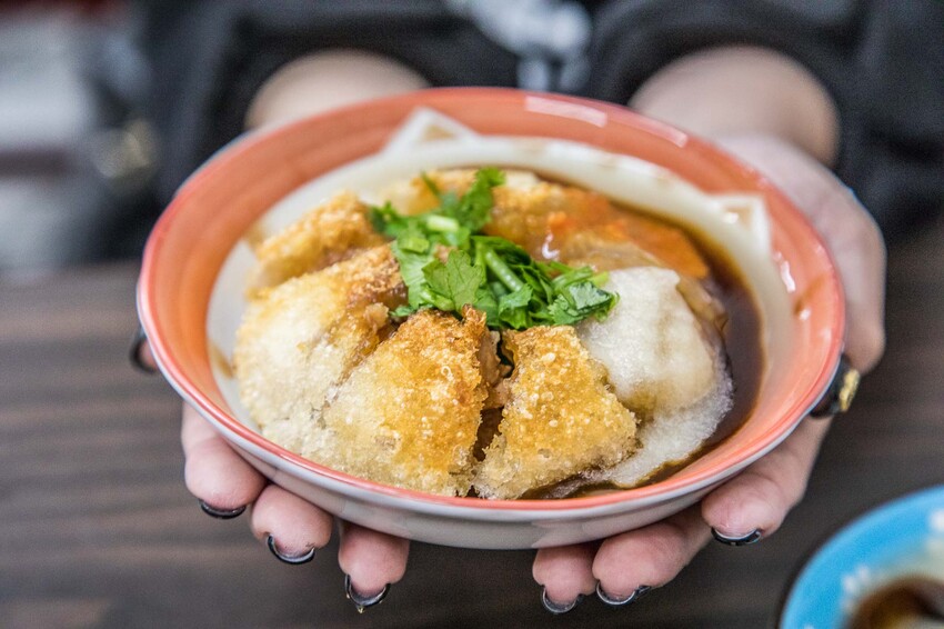 脆皮肉圓的口感真的很棒!而且在北部很少有這樣的炸肉圓,後來跟老闆聊了一下,原來脆皮肉圓是來自岳父傳承的手藝,脆皮肉圓因為生意真的很好,建議最好一開門或是下午一兩點的時候就可以來,才會會撲空唷!