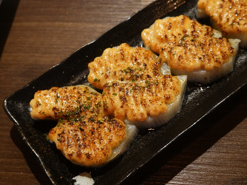 每當我想在居酒屋補充蛋白質,又不想太有罪惡感,就會點烤魚類型的料理。「三虎居酒屋」烤功不錯,鯖魚本身滿新鮮,外皮又帶點酥脆感,裏頭魚肉則是厚實,不用多加調味,撒點鹽、擠上檸檬汁就足夠。
