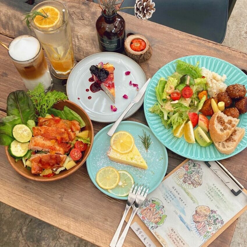 座落在殘破石屋中的樹夏飲事,在石屋殘跡後建了一棟玻璃屋,玻璃屋旁還有一棵百年鳳凰木,冬天時猖狂的枝枒增添了一股蕭條,到了夏天鳳凰木開花,又是不一樣的景色。樹夏飲事提供早午餐、麵包與飲品,每天還有當日限定款甜點,很推薦檸檬咖啡、肉桂卷、檸檬塔,另外,這裡內用是沒有限時的,讓客人可以舒服自在的享受這個美好時光!