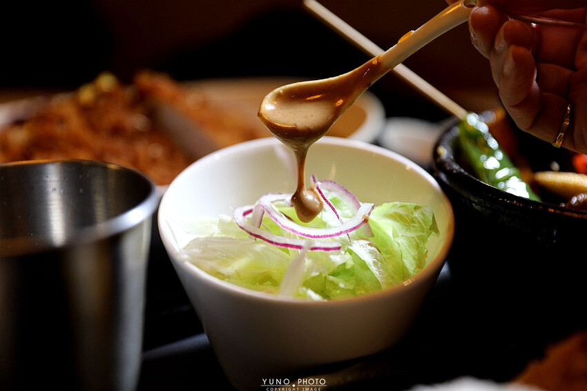 生菜口感爽脆相當開胃有胡麻醬和柚子和風醬兩種口味可選