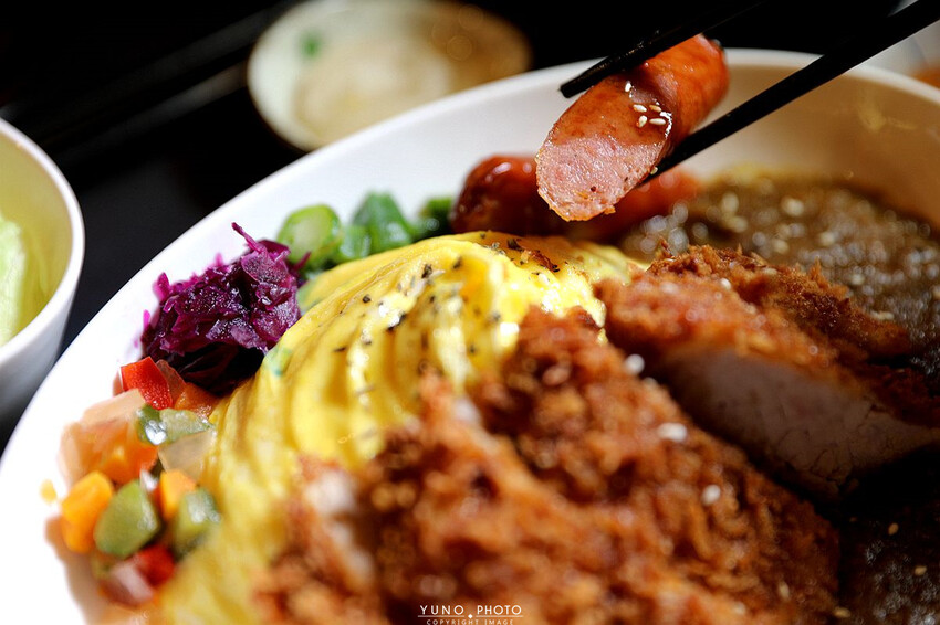 德式香腸口感脆彈多汁 加上特製咖哩醬增添風味搭配外酥內軟的豬排 層次豐富吃的超滿足!