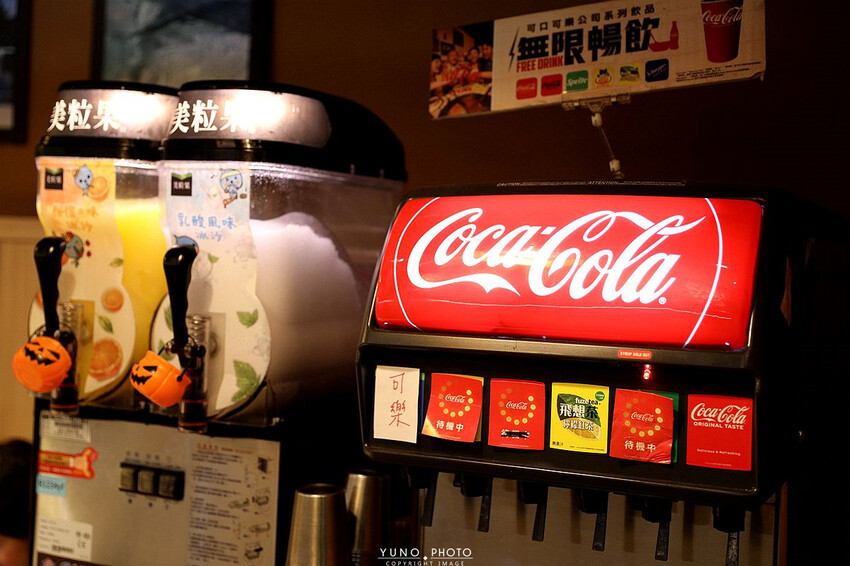 禾荳家咖哩屋內用提供飲品無限享用 包含氣泡飲及冰沙品項搭配咖哩超對味