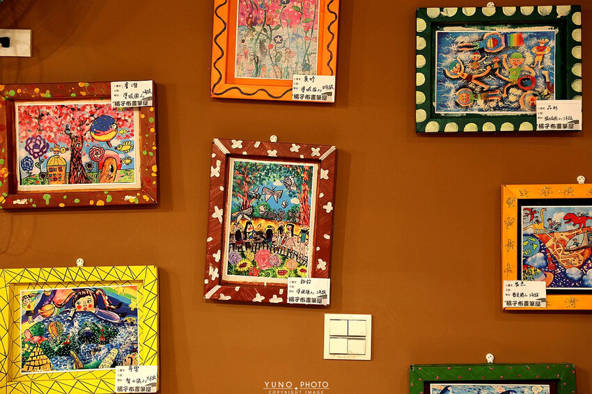 通往二樓的樓梯 還有很多小朋友的可愛畫作 超級療癒的
