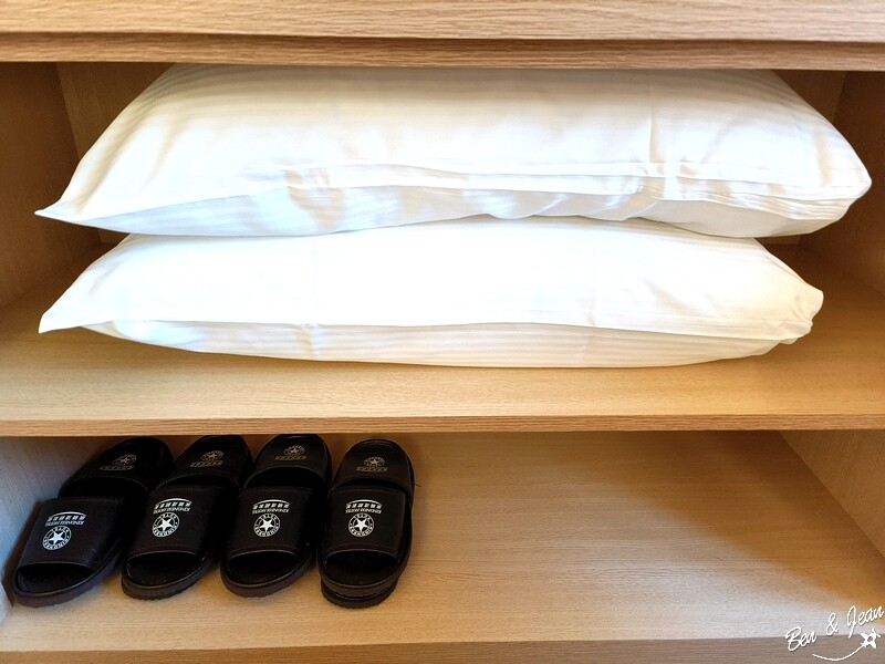 櫃子裏還有兩顆枕頭可以用 我們習慣用兩顆枕頭,太方便了