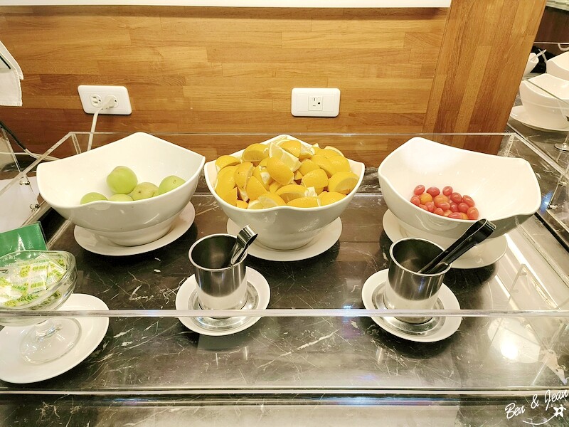 一樣是兩排全滿的食物、中式、西式、也有港式的廣東粥, 鹹食、甜食、飲料、 水果、真的用看的都飽了,真的是五星級飯店的早餐水準了