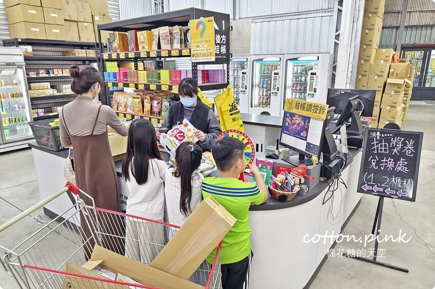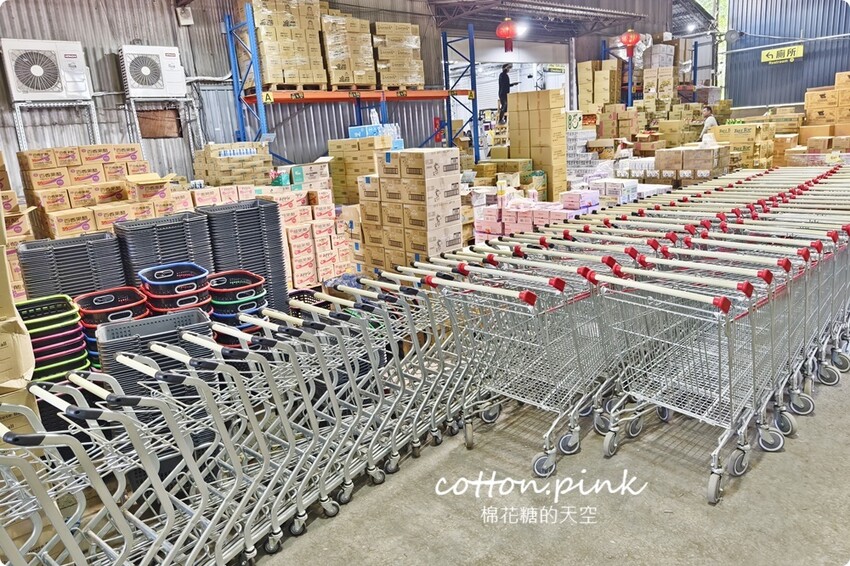 倉庫現場還有冷氣、冷飲販買機~加上滿滿燈光,逛起來舒服又明亮!一走進來就可以看到各種不同大小的購物車方便大家血拚,阿季直接建議推大台的~因為裡面真的太好買了啦!