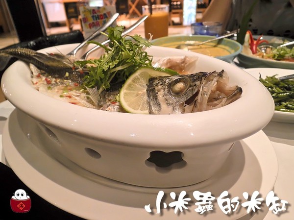 這麼大盤的清蒸檸檬鱸魚一上桌就佔了我們桌面的4/1空間了