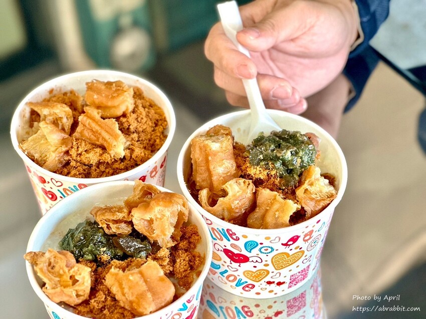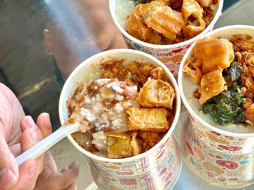 粥的部分內用是紙碗裝,環保不塑之客來內用的話,我蠻推薦自帶碗筷來用餐。份量上蠻剛好的,粥上面一綠搭配肉鬆、油條。