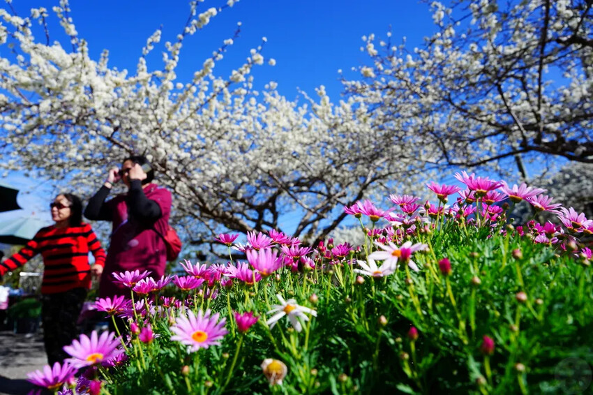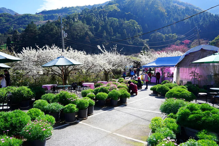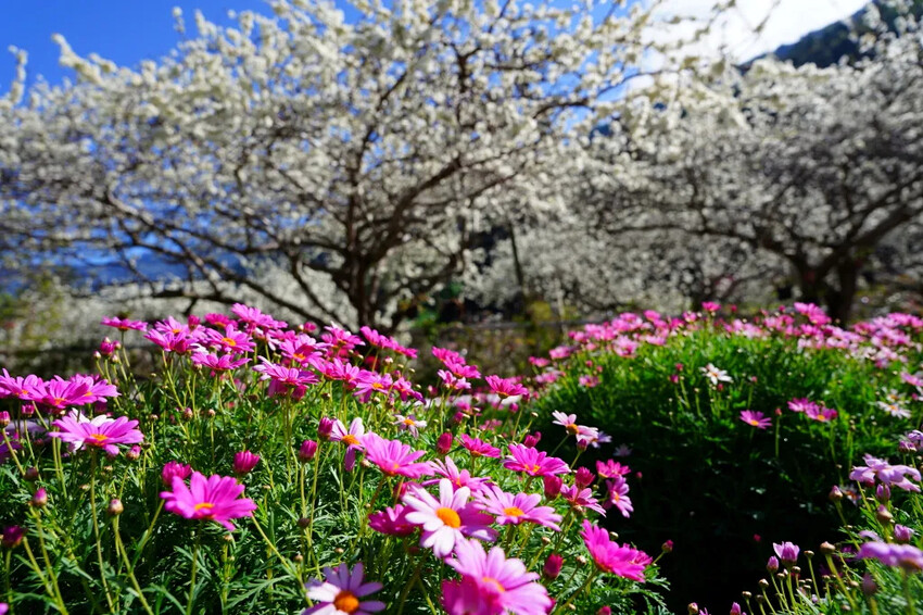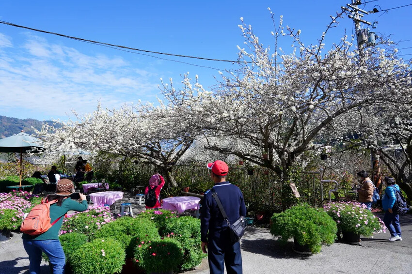 今年他們還特別種植了各種不同顏色的花卉,五顏六色搭配上那片李花的白,真的是美得驚豔呢!整個景象就像是一幅繽紛的畫。
