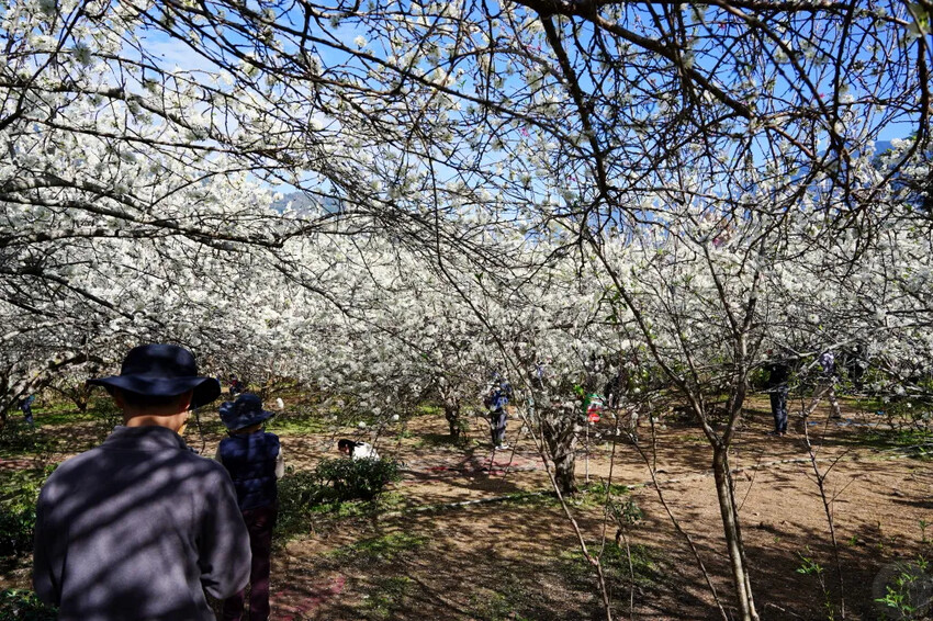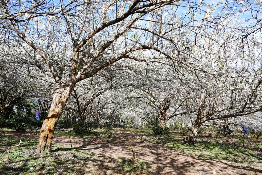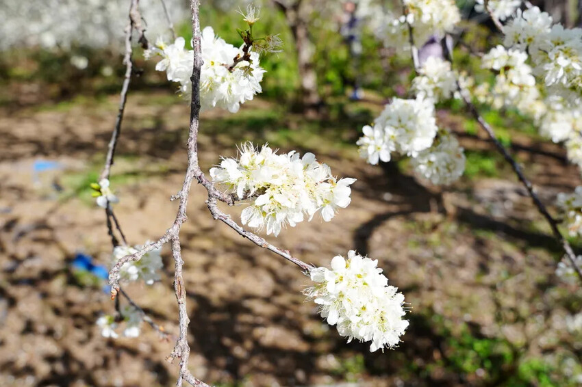 天啊,人潮真的是超多的,有點嚇人啊!不論怎麼拍照,總是會有人在附近晃來晃去的。畢竟這裡的李花開得密密麻麻,而且都長在一起,所以吸引了好多旅客來這裡拍照!