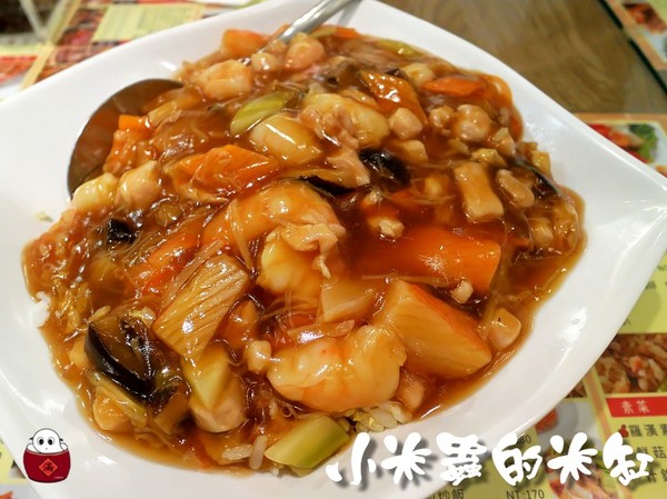 在搭著勾芡的燴料,雙重的口感,真是好吃極了^^