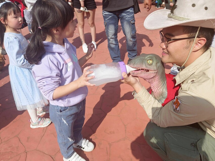 原來是可以餵小恐龍喝ㄋㄟㄋㄟ,大家都趨之若鶩,看到小朋友的表情又愛又怕,還蠻好笑的🤣