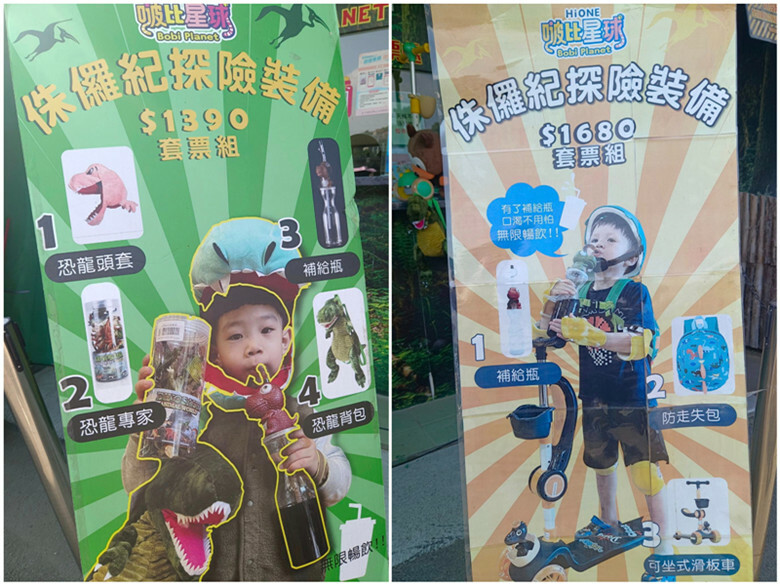 他們也有提供二種侏儸紀探險裝備的套票發售,$1350套票包括恐龍頭套+背包+補給瓶和恐龍專家,$1680套票則有補給瓶+防走失背包+可坐式滑板車,適合家中有恐龍控的小朋友,全套裝備上身,逛起恐龍樂園肯定更加身歷其境