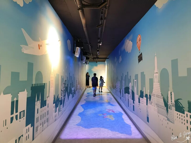 這個世界光廊的主題也滿有趣的,旅人帶著行李箱乘著飛機,穿梭在一個個不同的國度,與不經意的大街小巷