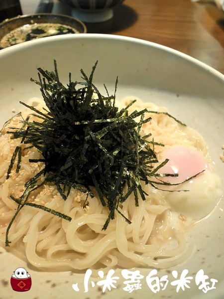 帶有嚼勁的烏龍麵搭著冷冷的白湯與芝麻、海苔的清香