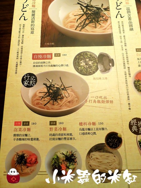 所以菜單主要商品就是以烏龍麵為主再加小菜跟甜點、飲料