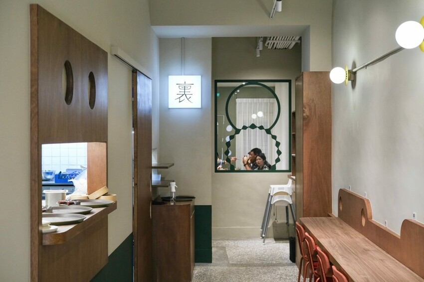 ▼【裏食 LI SHIH】用餐空間分為兩個不同風格的空間,前面的木質吧台區適合單人享受,後面則是適合多人的座位區,保留了許多老宅本身的元素,像是地板的花磚就超有懷舊復古感,港式復古咖啡廳風隨便拍氛圍都好讚。
