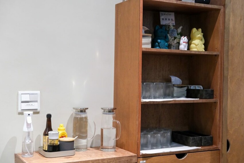 ▼【裏食 LI SHIH】採取自助式用餐服務,備有茶水和醬料可以取用,也有兒童椅和兒童餐具,沒有收取服務費。