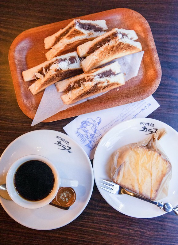 名古屋自詡「喫茶店王國」,經典代表名物便是「紅豆奶油土司」配咖啡,這兩味在名古屋得以完全結合,喝咖啡送土司、點土司送咖啡這一招在名古屋大行其道,甚至在日本廣為流傳;是以在名古屋老字號的「喫茶店」很多,動不動就3、40年以上,珈琲処 カラス便是其中一家,更在2018年末的《孤獨的美食家2018 SP:京都・名古屋出差篇登場;接下來,我們就跟著五郎一起到名古屋吃早餐吧。這一篇也是個人跟著五郎「吃」的第62家。
