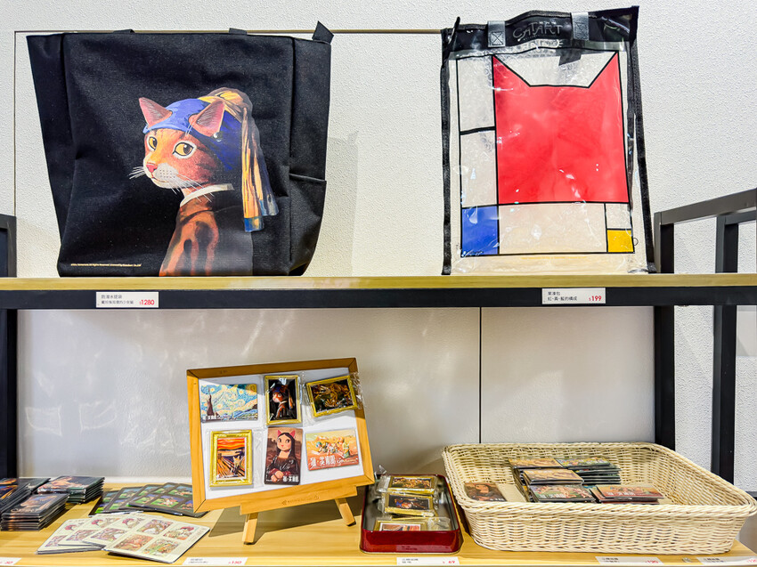 最後來到貓美術館紀念品展售區,有很多以貓咪為主題的商品,如包包、明信片、畫框等。