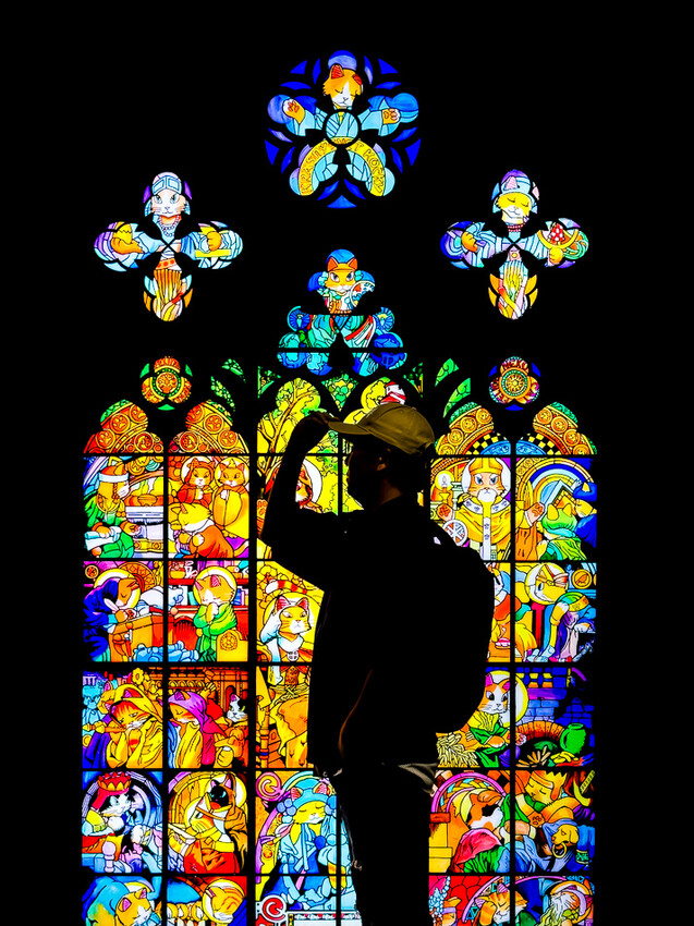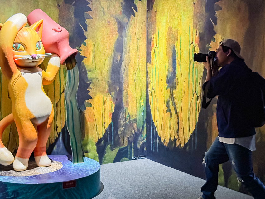 ▲▼這個區域是一個全新限定的觀展體驗,讓你可以親身走入名畫,與貓咪們互動拍照,體驗貓咪的世界。你可以在巨型玻璃花窗「光之貓」中感受貓咪的神秘和魅力,也可以在「貓循環 貓舍爾」中感受貓咪的無限和循環。