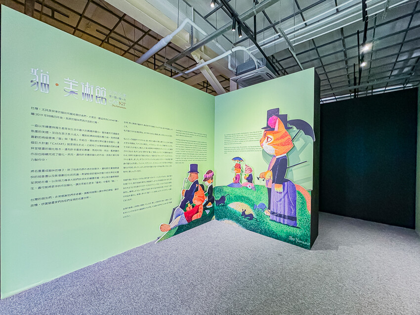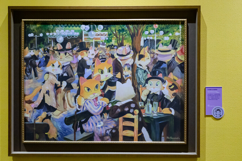 貓美術館展覽是一場結合貓咪與藝術的視覺盛宴,展出了60件由日本藝術家山本修創作的貓名畫,包括10件從未在台灣展出過的新作品。