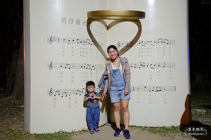 吃飽了、喝足了,剛好走到嶺頂公園這裏走走散步一下!! 這裏有街燈下的祝福的藝術造景!! 打上燈光後,變的很有特色