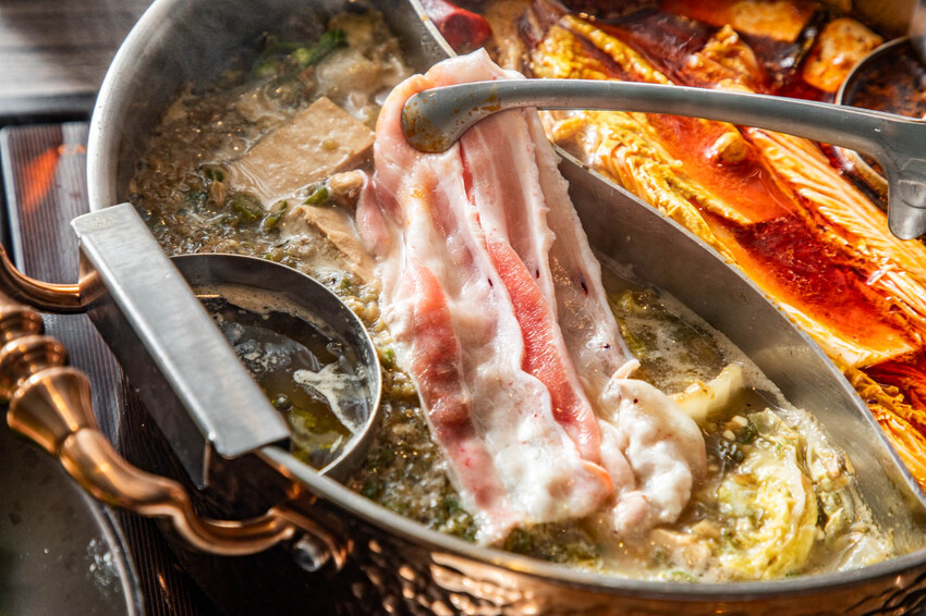 安格斯無骨肩小排 ,肩小排細緻軟嫩的口感並兼俱香醇風味的完美油花,在青麻椒肥牛鍋裡川燙,川燙3~5分熟後入口,口感香嫩多汁,青麻椒肥牛鍋香氣更加提升襯托出肩小排的肉汁甜味!
