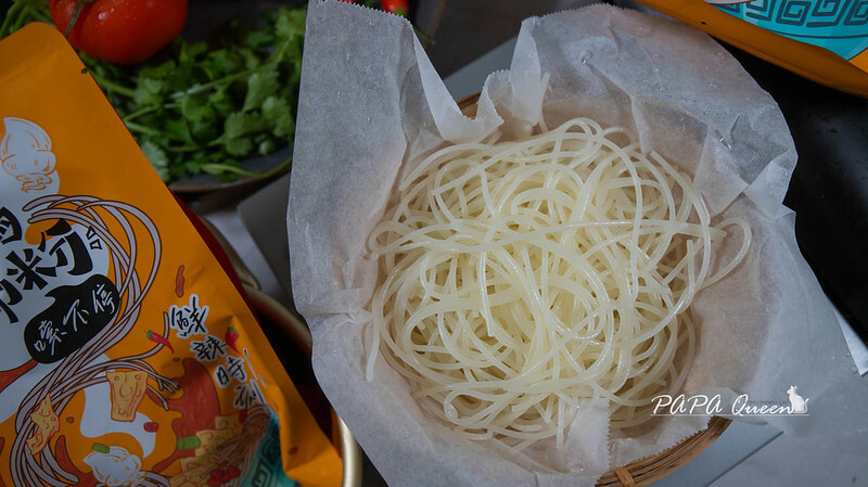 首先取出米粉,冷水下鍋一起加熱至沸騰(9分鐘)撈出備用