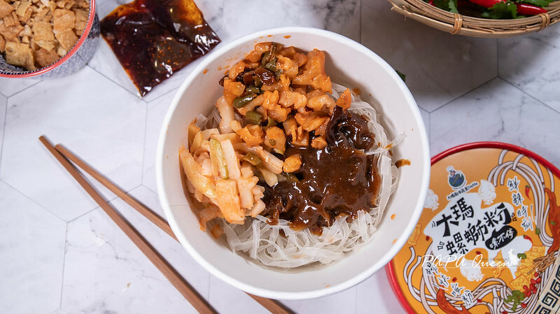 6分鐘就能品嚐,低熱量:223大卡!其中花生腐皮包(銀色)與透明調味包請最後再添加,透明調味醋是來自柳州”白醋”非常提鮮,開蓋後在淋上去攪拌一下,呼~就是Q彈滑溜,麵體超會吸湯汁,每一口都是酸麻中帶著脆脆,也有飽足感。