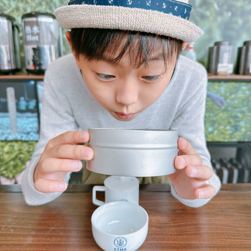 專業茶師用上比賽才看得見的評鑑杯碗,讓小朋友仔細對好氣孔!