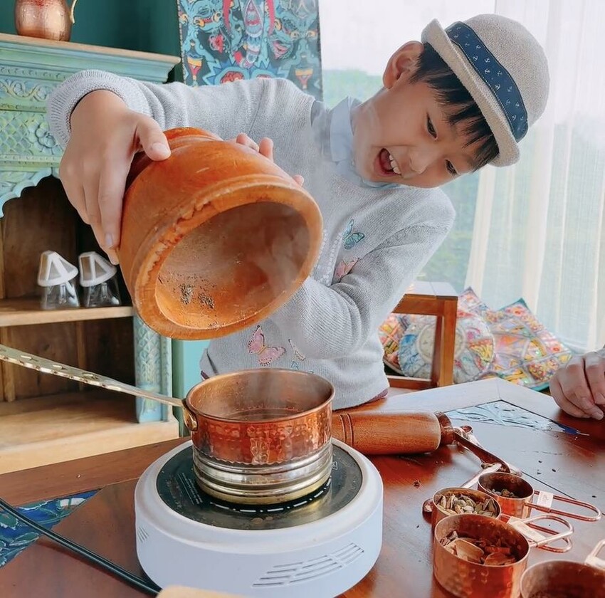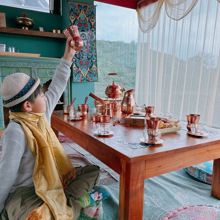 用印度原裝進口的紅銅器具飲用,實在太道地了吶~