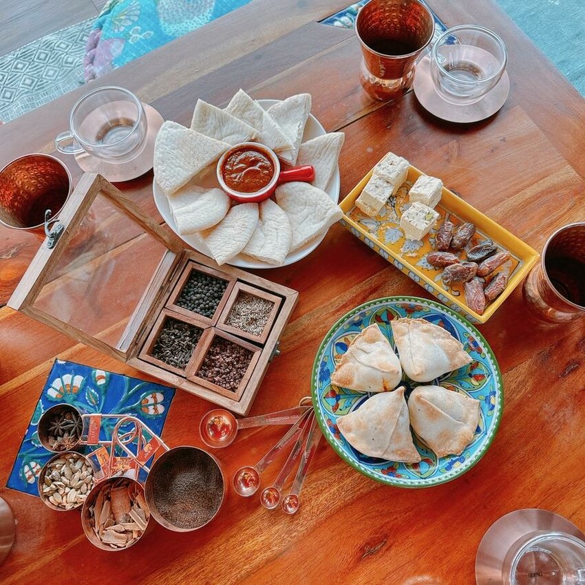 再吃上一個咖哩角和印度進口的酥糖及椰棗!