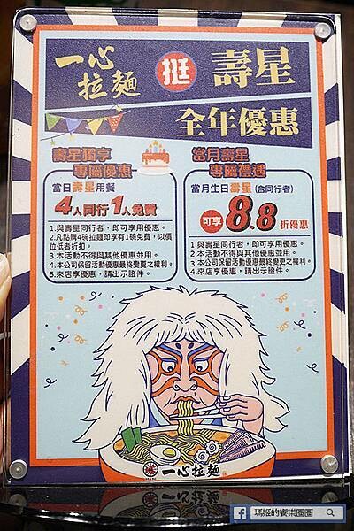 一心拉麵也不定時的會推出一些優惠活動,來這裡慶生也很可以。