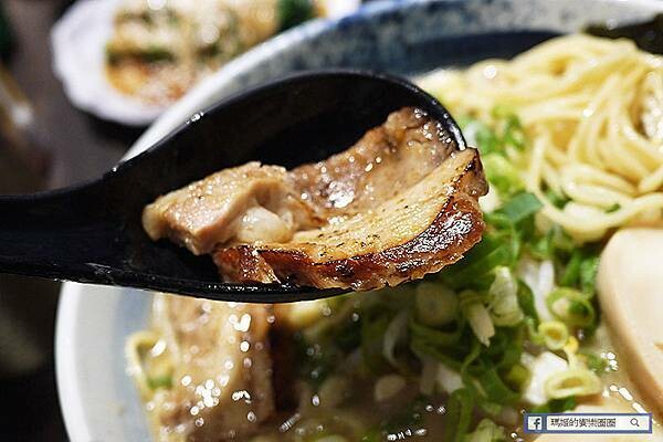 他們家的叉燒是肥瘦參半的五花肉,先滷過並且在表面炙燒過,油脂潤口不油膩,且香氣俱足,每一塊的肉也都有著厚度,和一般拉麵搭配的薄圓叉燒又不盡相同。