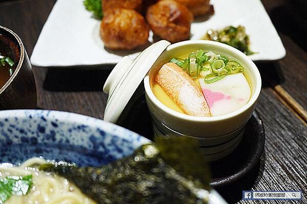 掀蓋的瞬間輕煙也隨之飄散在空中,熱呼呼的茶碗蒸上擺放了蟹肉棒和魚板,底下的蒸蛋也是用熬煮多時的高湯去調配,蛋香味濃,美味可口。
