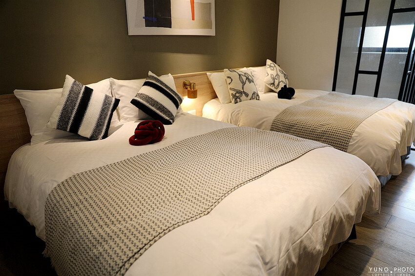 這次YUNO入住的是四人房型擺了兩張超大雙人床 用色和燈光都相當舒服