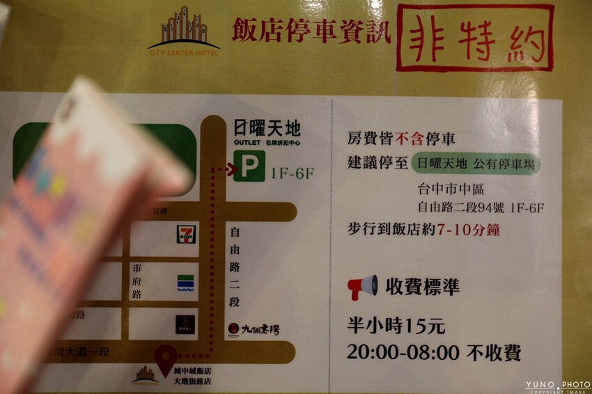 台中東旅附近的「日曜天地停車場」 收費相對親民 步行約7-10分鐘左右