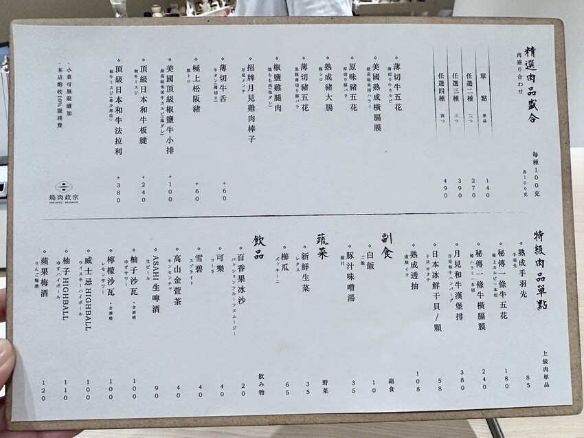 以個人燒肉為主,提供精選肉品盛合,每種100g,
