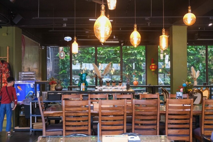▼【金雲堂人文茶館】用餐環境充滿中國古風氛圍感,以適合4人~10人的座位為主,可以容納家庭或是大型團體聚餐,另外還有提供包場服務,以及熊貓配合外送在家也能吃。