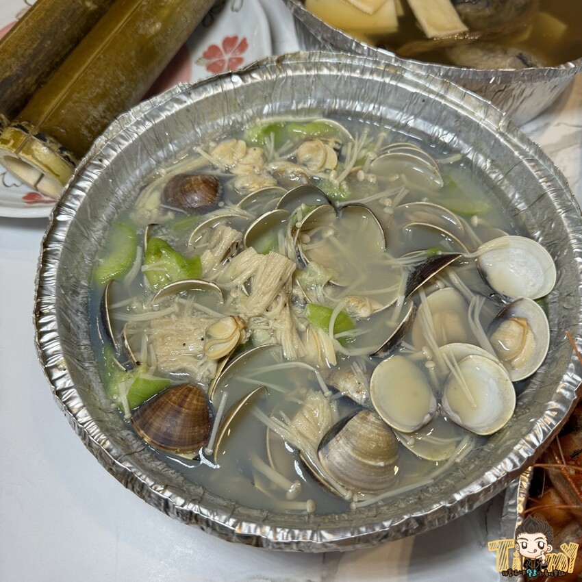 滿滿的蛤蠣、絲瓜和金針菇一起烹煮,湯汁超甜,不只解酒也解膩喔