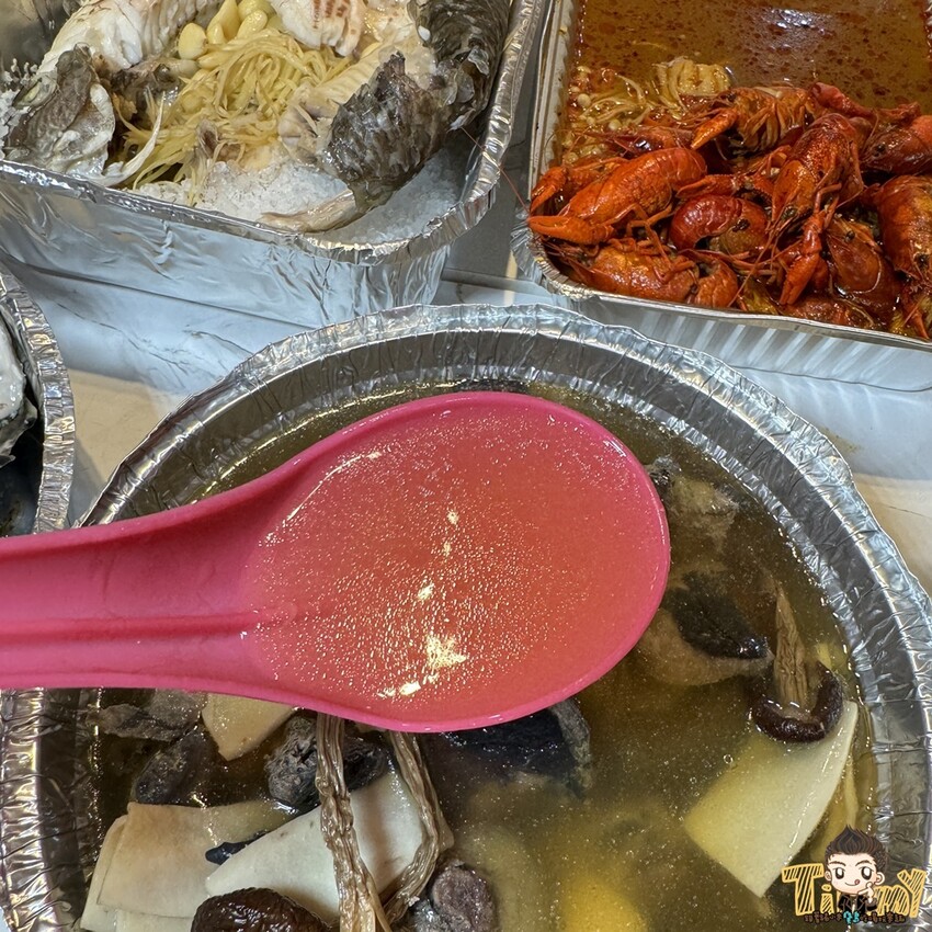 宵夜時間當然少不了熱湯,湯品有蛤蠣湯、鱸魚湯、蒜頭雞湯和鮑魚雞湯