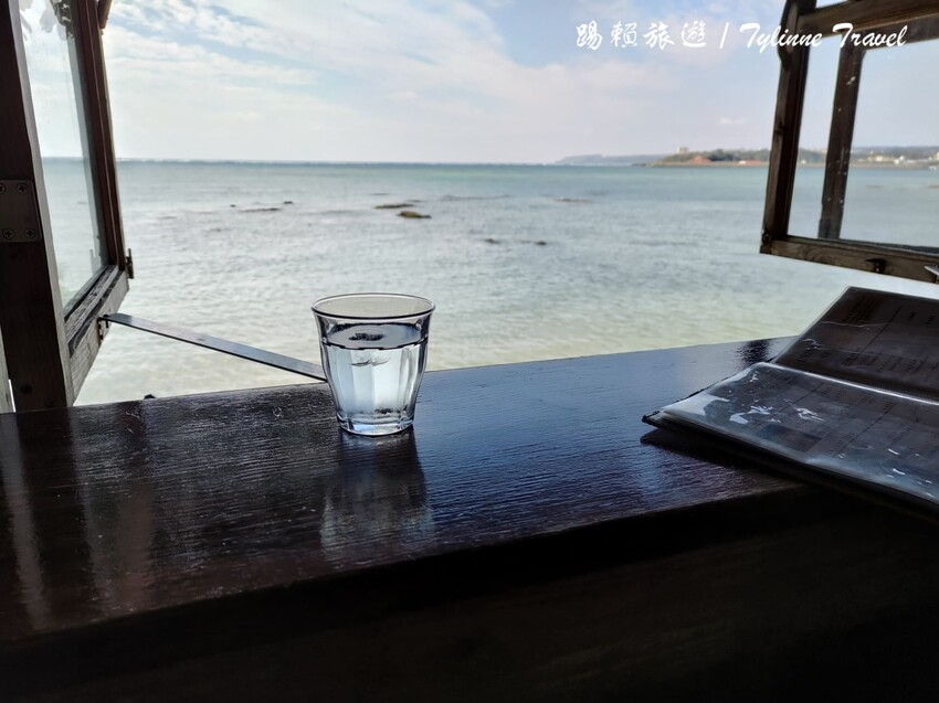 餐廳的室內區跟櫃台是在樓下,樓上靠近馬路是戶外座位區,遠方望過去就是奧武島